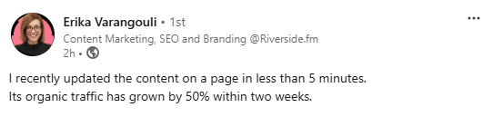 Erica increased the page performance in search by 50% with less than 5 minutes of effort: