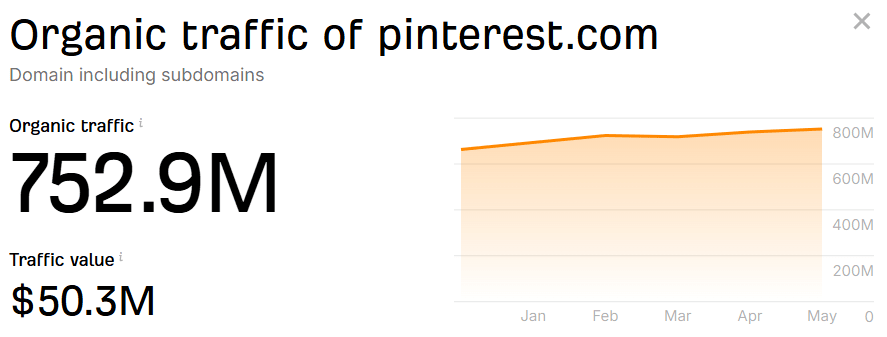 I mean let's look at the numbers! Pinterest gets 752.9M visits every month as per data from Ahrefs. There has to be something there for SEO, right?