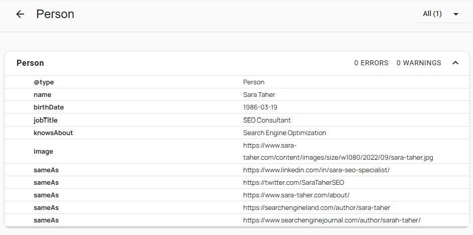 Use tools like the Structured Data Testing Tool to verify that your Person Schema is implemented correctly.