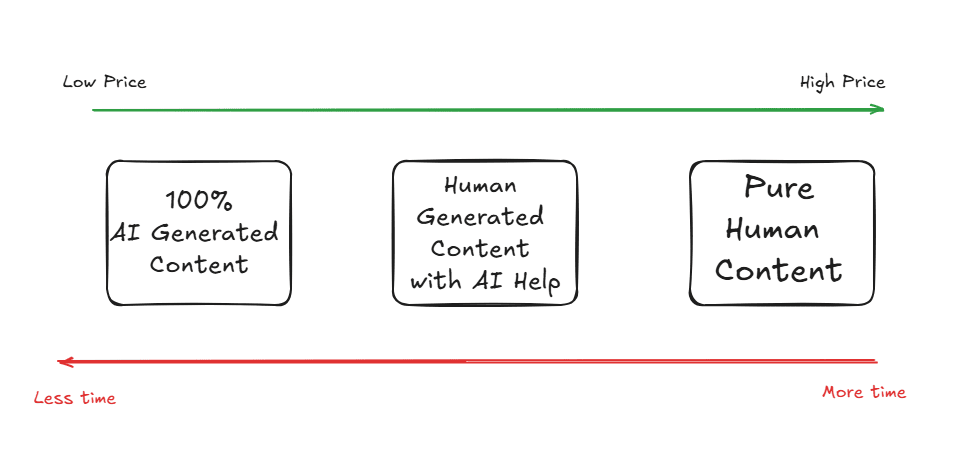 AI generated content is faster and cheaper, but it's not great content, it can be just called "ok". Then there's people using AI to write, and then there is just 100% human written content.