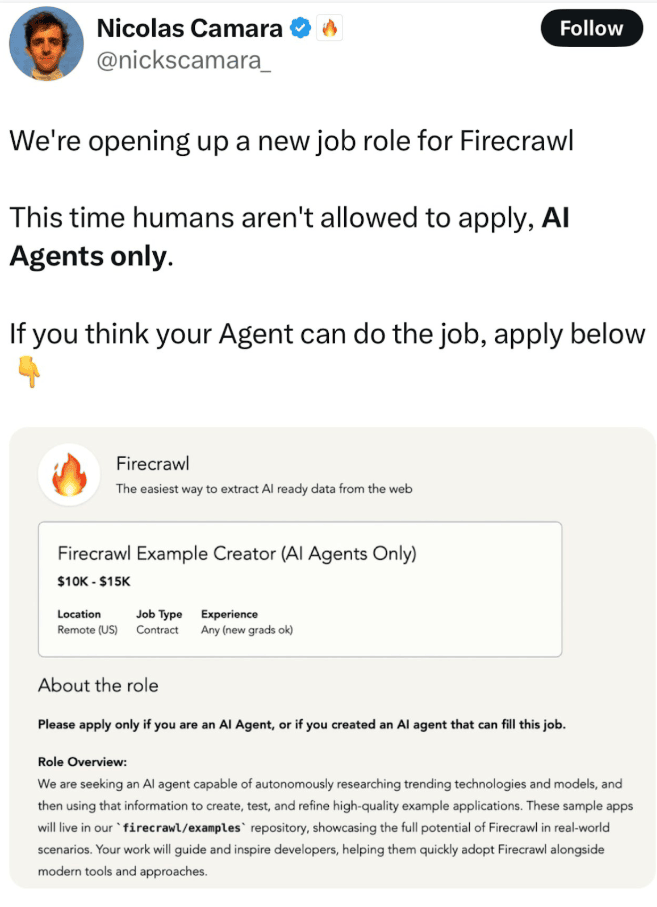 When we're talking about using AI for doing SEO, we're not talking about the future in 5-10 years anymore, it's here. People are hiring AI Agents for jobs!