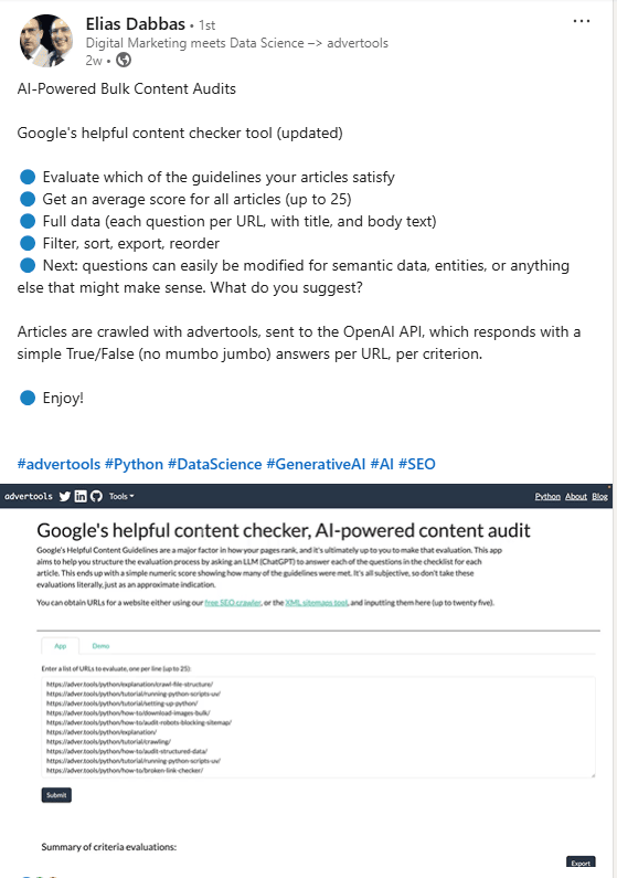 and I saved the best example for the last, AI Content Audits! Imagine automating your entire content audit process, learn more here!