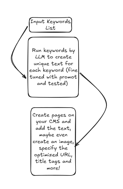 Imagine creating an AI agent, that can create actual pages on your website. Here's an example of a workflow: