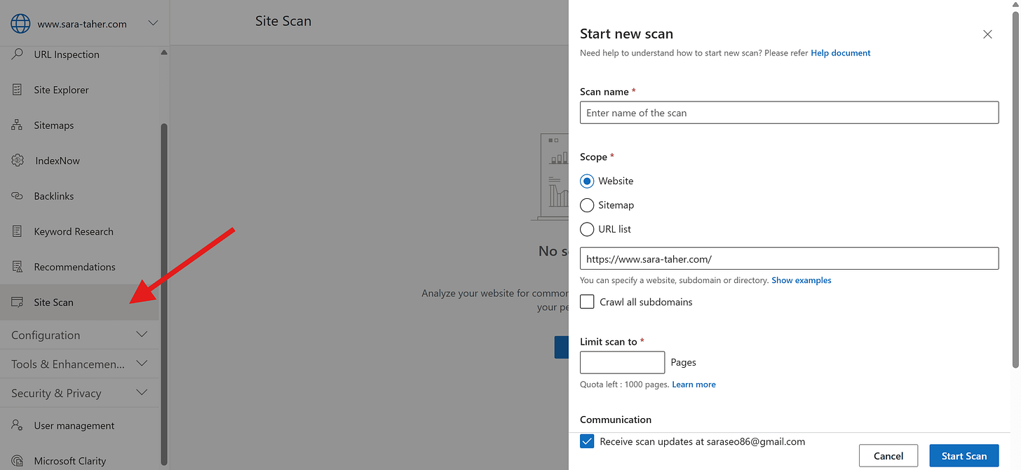 Another cool thing you can do with BWT is their Site Scan feature. You can run a site scan to help you identify any technical issues and these type of issues will probably be applicable to Google as well.