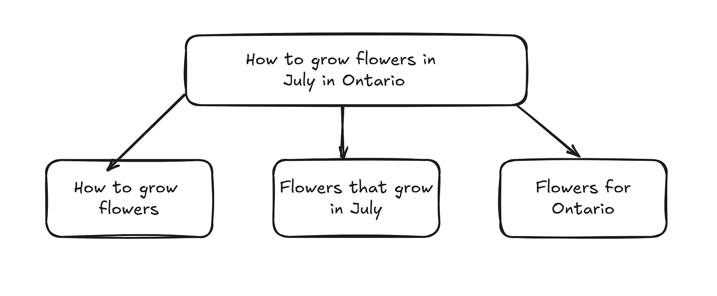 Query fan-out is when a main, often complex query is broken down into several sub-queries or related queries to better answer the original one.
