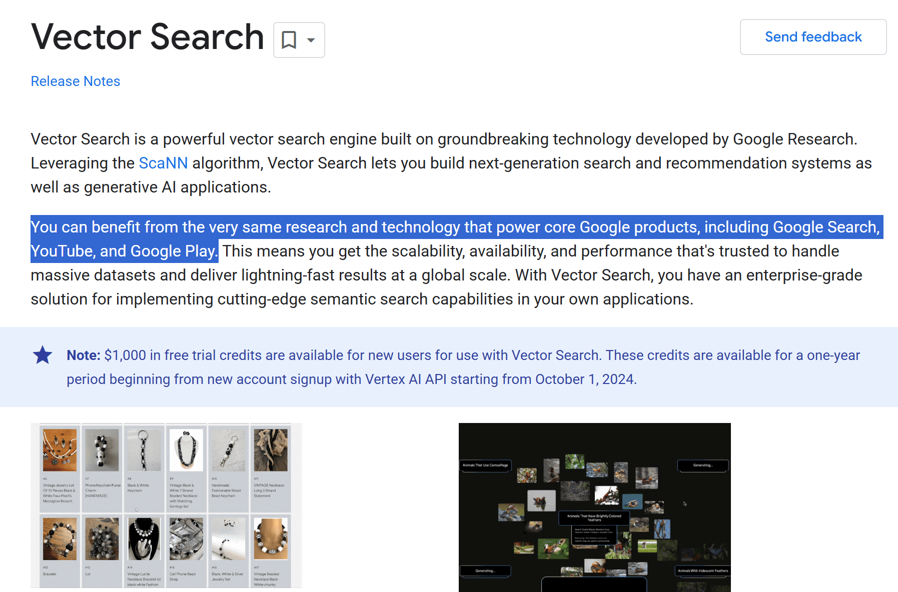 In the screenshot below, you can see that Google explicitly tells us that "vector search" is the same technology that powers Google search.