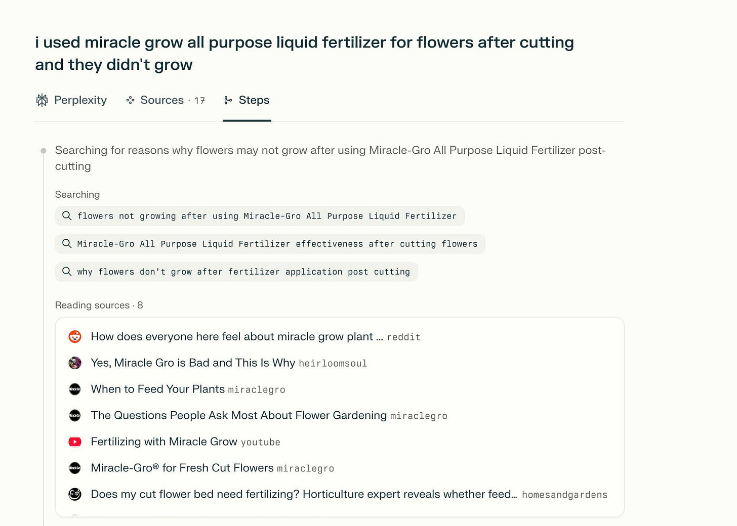 I was trying to figure out why my flower pot wasn’t blooming again after cutting, so I went to Perplexity and searched: