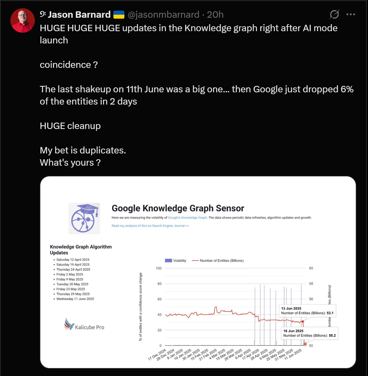 Jason Barnard, the knowledge graph dude also noticed some massive shakeups... Google is doing some deep cleaning!