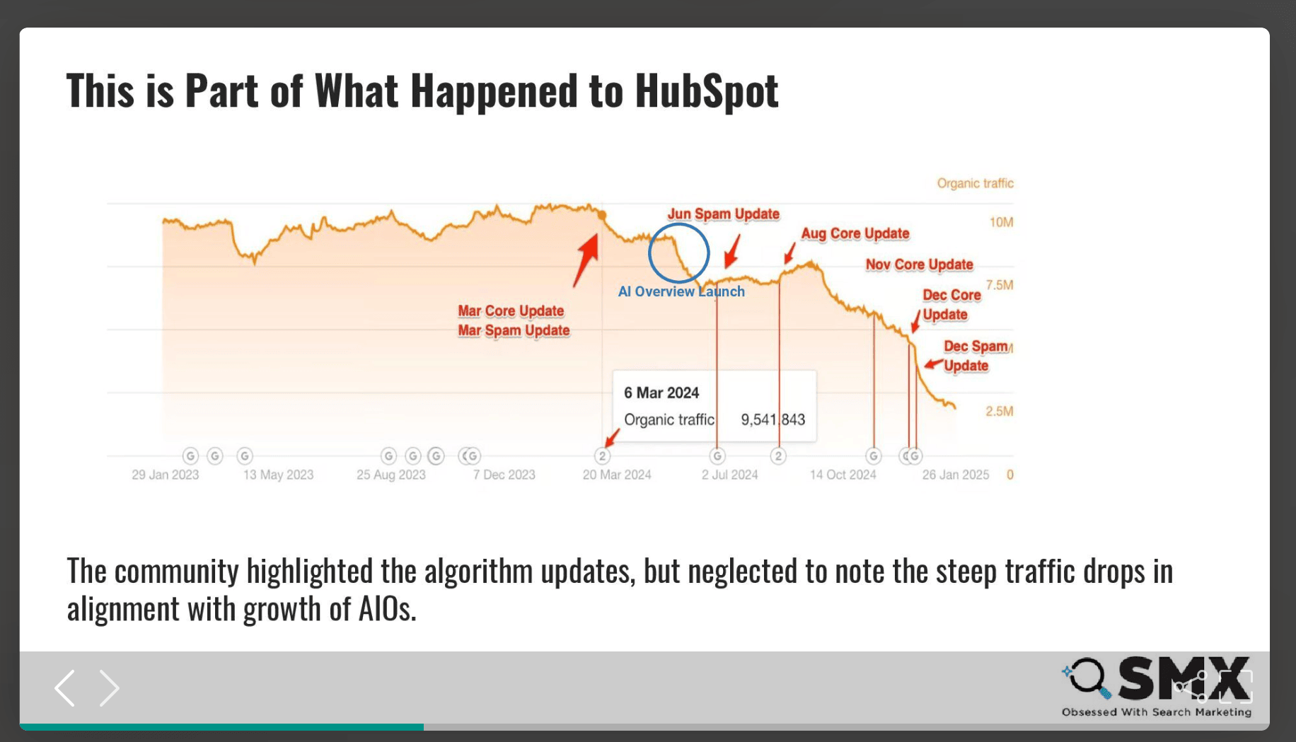 However, remember Hubspot and their blog traffic drop situation? According to Mike King, the community was so focused on analyzing the relation between Google updates and the traffic drop, and totally ignored the impact of ai overviews!