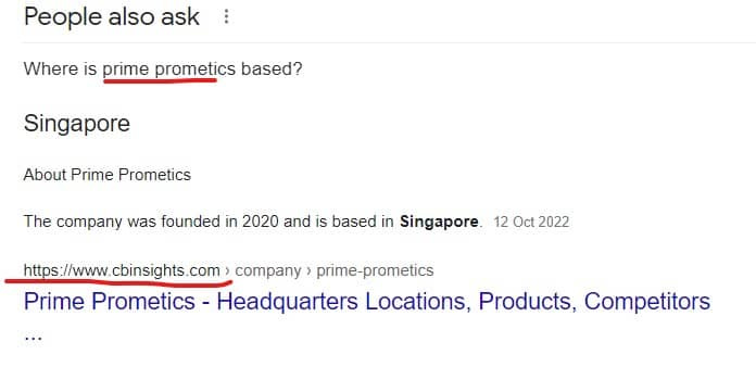 Search for the brand name on Google and see if there are People Also Asked questions about the brand, that are answered by another website. This is a great opportunity to answer those questions on your own website and hopefully appear for them in People Also Asked, increasing brand visibility on Google. Here's an example of a brand "prime prometics" where questions about their own brand are answered on other websites: