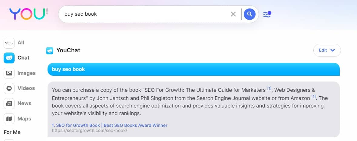 If you try searching for a conversion/money query on You.com, it will return a single result as below. I do not think this is very attractive for users looking to buy something. People like to feel they have options and see different alternatives before making a purchase. That's one of the strong reasons people shop online in the first place.