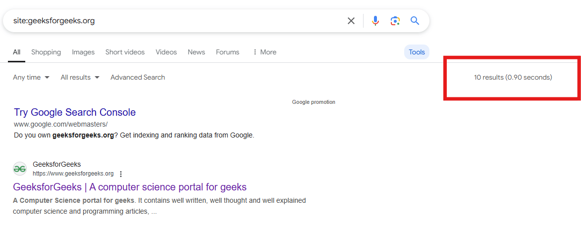 Geeksforgeeks - a well-known educational website got de-indexed from SERPs! Thousands of pages literally gone! A simple site: operator check will return 10 URLs,