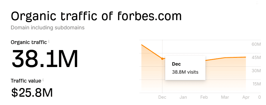 We all still remember how Google served forbes.com/advisor/ folder a manual action back in November for site reputation abuse. Yes, the folder only, not the entire website. You can see in the screenshot below how traffic declined from Nov to December and millions of clicks were lost.