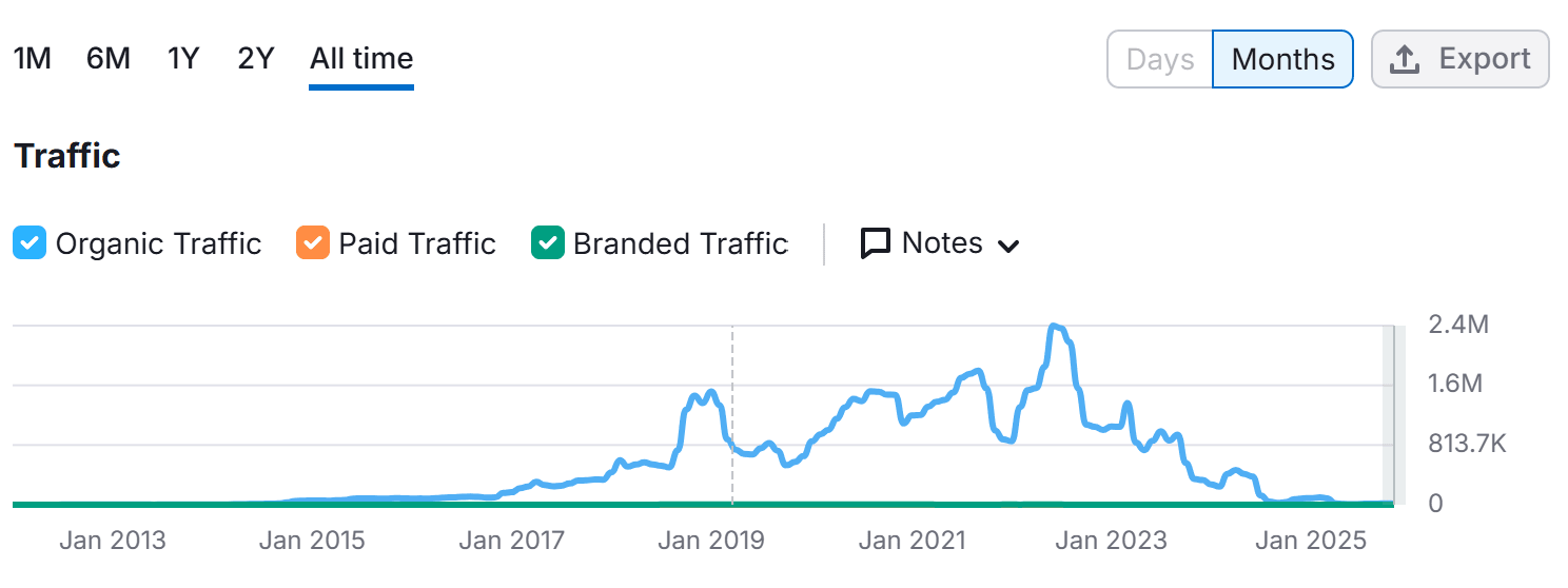 And even if deletion somehow âworked,â what are you recovering to? A smaller site with fewer pages will naturally earn less traffic. You canât expect to return to past traffic levels after removing whole categories.